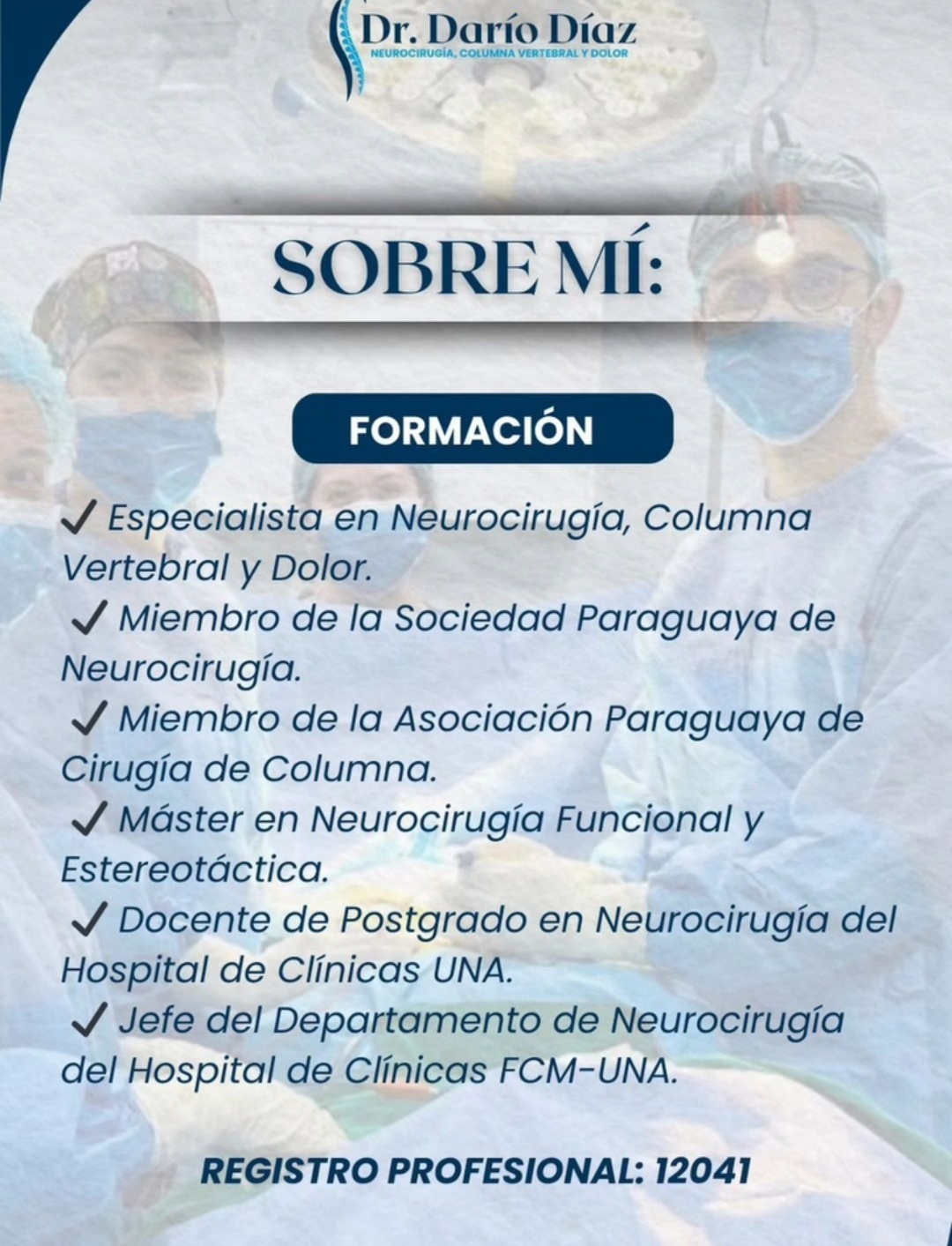 Dr. Dario Díaz - Especialista en Neurocirugía, Columna Vertebral y Dolor (Reg: 12041)